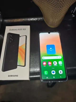 Teléfono móvil Samsung Galaxy A33 5G en color negro. - Pantalla de 6.4 pulgadas. - Cámara principal de 48MP. - Batería de 5000 mAh. - Caja,cargador, dos fundas.