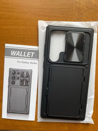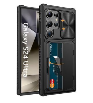 Funda protectora para Samsung Galaxy S24 Ultra con compartimento para tarjetas. - Diseño robusto y elegante. - Compartimento para tarjetas integrado. - Protección para la cámara.