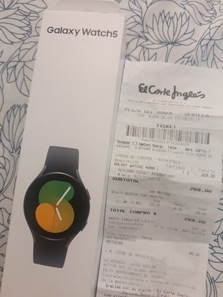 Samsung Galaxy watch 5 con LTE (SIM virtual) de 40mm. Sin desperfectos, funciona perfectamente, solo unos meses de uso. incluye cable + cargador C. (No los incluye el reloj y tuve que comprarlos por separado) Sin caja.