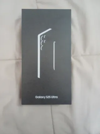 Caja original para el Samsung Galaxy S25 Ultra. - Diseño minimalista en color negro. - Ilustración frontal del dispositivo.