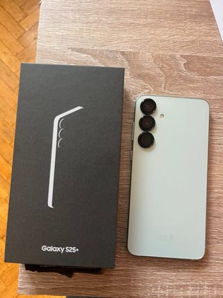 Teléfono móvil Samsung Galaxy S25+ en color menta y con 256GB de almacenamiento. En perfecto estado, con la caja incluida, lo unico que vendria sin cargador