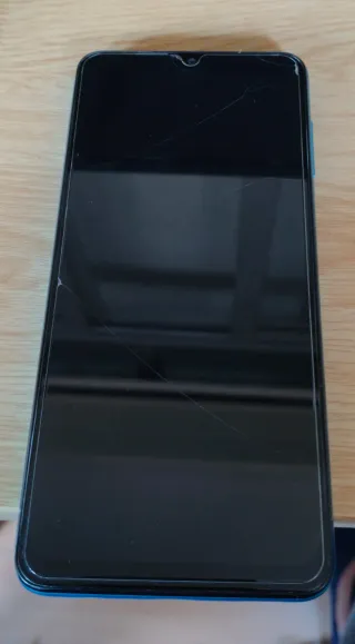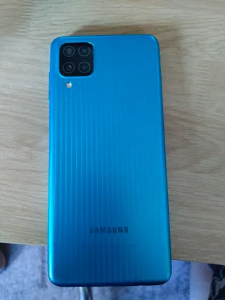 Teléfono móvil Samsung Galaxy M12 en color azul. - Protector pantalla con algunas grietas. - Se regala un nuevo protector. - Marco lateral azul. - No cargador