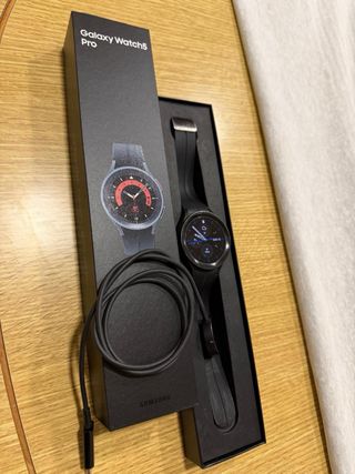 Reloj inteligente Samsung Galaxy Watch 5 Pro en color negro. Incluye su caja original y cargador. - Modelo: Galaxy Watch 5 Pro - Color: Negro - Incluye caja y cargador En perfecto funcionamiento, se vende por incompatibilidad con nuevo movil Iphone