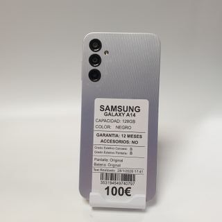 Teléfono móvil Samsung Galaxy A14 con 128GB de capacidad y acabado en color negro. El dispositivo se encuentra en buen estado estético, con grado B tanto en carcasa como en pantalla. La batería es la original. - Capacidad: 128GB - Color: Negro - Grado Estético Carcasa: B - Grado Estético Pantalla: B - Batería: Original - Garantía: 12 meses - Accesorios: No incluidos