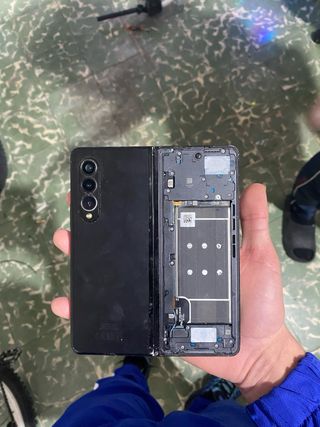 Teléfono móvil Samsung Galaxy Z Fold en color negro. Dispositivo plegable con diseño moderno. - Pantalla plegable. - Cámara trasera triple. para piezas