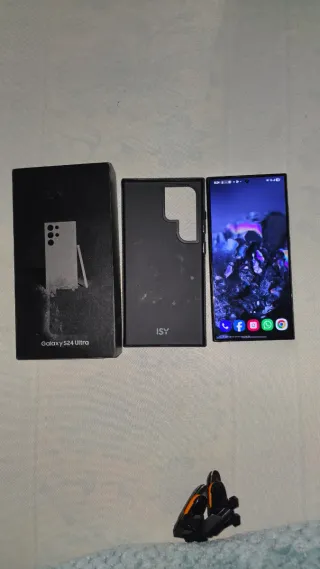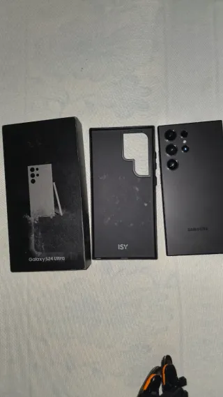 Se vende caja original de Samsung Galaxy S24 Ultra junto con una funda ISY. - Caja con diseño minimalista. - Funda negra con interior suave.
