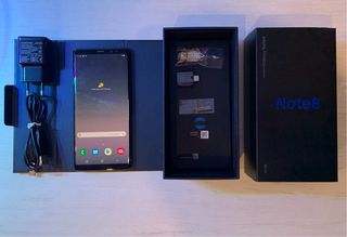 Teléfono móvil Samsung Galaxy Note 8 en color negro y con 64GB de almacenamiento. Todo en perfecto estado. - Cargador incluido. - Adaptador USB. - S pen incluido. - Herramienta para SIM.