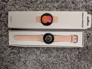 Smartwatch Samsung Galaxy Watch 5 en color rosa. Se ha usado solo un par de veces, no tiene ni señales de uso. Esfera de 40mm, la correa es talla S/M. Lo vendo porque no es compatible con iPhone. Tiene la caja original y el cargador original, el cable y la base de carga.