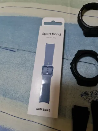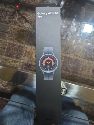 Reloj inteligente Samsung Galaxy Watch5 Pro. Los sitios donde falta pintura es del roce de poner las carcasas, 3 juegos de correas, la sport band está totalmente nueva sin abrir y unas de las negras sin estrenar. - Tamaño de 45mm. - Correa negra. - Cargador inalámbrico..