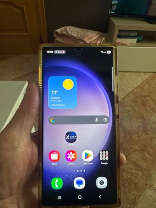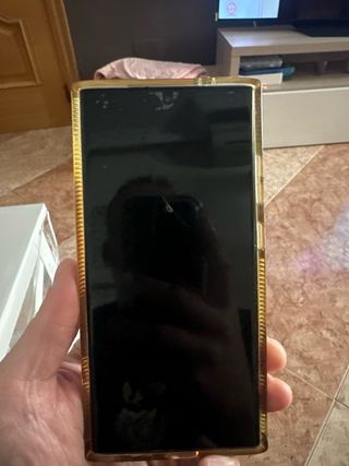 Teléfono móvil Samsung Galaxy S23 Ultra en excelente estado, prácticamente sin uso. - Acabado en negro con detalles dorados. - Pantalla grande y nítida. - Diseño elegante y moderno.