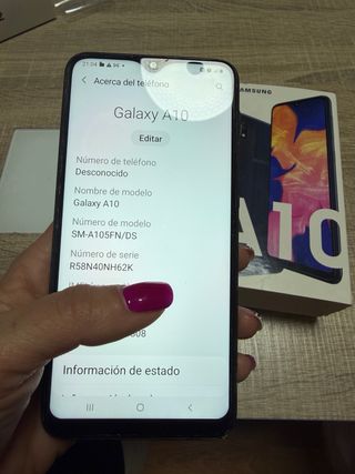 Teléfono móvil Samsung Galaxy A10. - Pantalla de 6.2 pulgadas. - Cámara trasera de 13 MP. - Cámara frontal de 5 MP. - Batería de 3400 mAh.
