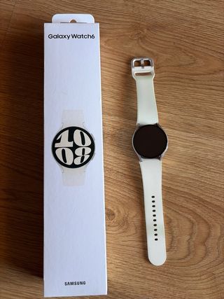 Reloj inteligente Samsung Galaxy Watch6 de 40 mm. Diseño moderno y elegante. Smartwatch en perfecto estado, apenas usado y sin rallajos. Funciona con Bluetooth para notificaciones, llamadas y apps desde tu muñeca, tiene pantalla Super AMOLED resistente con cristal de zafiro, y múltiples sensores de salud y deporte. También regalo dos correas de recambio sin abrir. Ideal para deporte, salud y día a día.