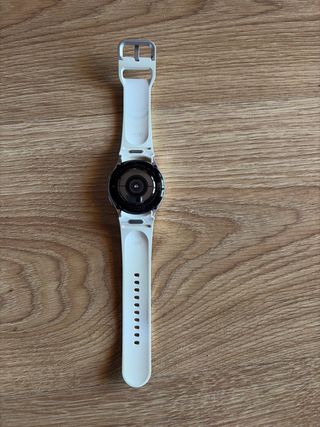 Reloj inteligente Samsung Galaxy Watch6 en color blanco. Modelo del año 2024. Vendo por incompatibilidad con el nuevo móvil appel - Diseño elegante y moderno. - Correa cómoda para uso diario.
