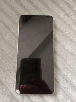 Teléfono móvil en color negro. La pantalla presenta una grieta en la parte inferior, aunque no afecta su funcionamiento. Ademas se entrega con funda - Pantalla táctil. - Cámara frontal. - 128 G
