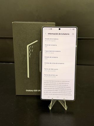 Teléfono móvil Samsung Galaxy S25 Ultra con 256GB de almacenamiento. - 12GB de RAM. - Capacidad de batería típica de 5000 mAh. - Fecha de fabricación: enero de 2025. - Fecha de primer uso: mayo de 2025. -bateria al 100% Color titanium gray -3 años de garantia
