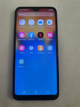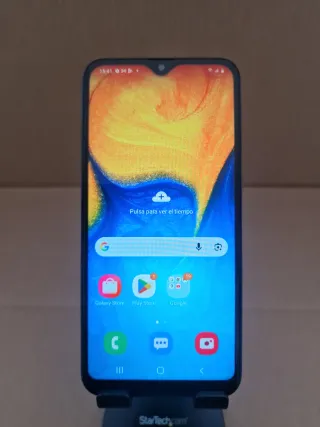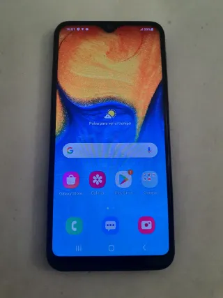 Teléfono móvil Samsung Galaxy A20e en color azul. Pantalla con diseño moderno en muy buen estado funcionando y físicamente Ram 3gb 32gb de memoria versión de Android 11