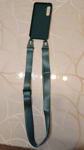 Funda para móvil Samsung Galaxy A17, A56, A16, S24, S25, A15, A36, con una práctica correa. - Color verde oscuro. - Diseño con patrón de líneas. - Correa ajustable con clips.
