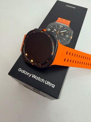 Reloj inteligente Samsung Galaxy Watch Ultra con un diseño moderno y deportivo. Nuevo, solo se saco para hacerle las fotos y ponerle el vidrio protector - Correa de silicona en color naranja vibrante. - Bisel y caja en color negro elegante.