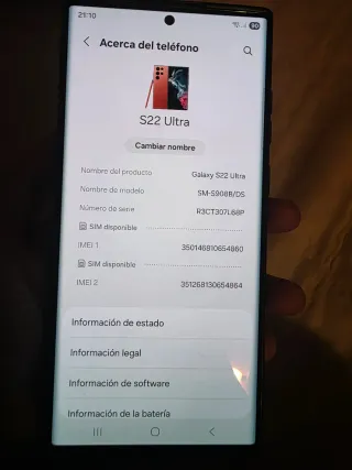 Samsung galaxy s22 ultra 12/512gb como nuevo no tiene ningún problema negociable un poco sin caja