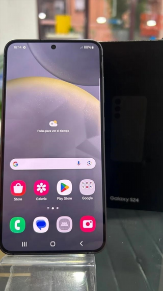 Teléfono móvil Samsung Galaxy S24 en color plata. Cuenta con una amplia capacidad de almacenamiento. - 128 GB de almacenamiento interno. - Incluye garantía. SOMOS TIENDA
