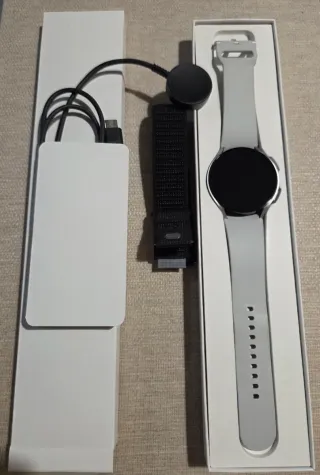 Samsung Galaxy Watch 6 44mm BT Silver. Impecable, como nuevo. Incluye: Correa original + Fabric Band negra (extra). Cargador original. Caja y embalajes originales. Garantía: Oficial Samsung hasta el 31/10/2026 (entrego justificante). El reloj no tiene ni un rasguño, funciona perfecto. Venta: Trato en mano en Valencia para que compruebes su estado real. También hago envíos por Wallapop (paquete <2kg). Precio algo negociable. No me interesan cambios. ¡Escríbeme si tienes dudas! #Samsung #GalaxyWatch6 #Smartwatch #Valencia