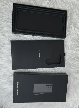Caja original del Samsung GalaxyS24 Ultra Color negro 📦🖤. Ideal para reposición, colección o para entregar el móvil como nuevo. Incluye compartimentos interiores originales. Estado: en muy buen estado 📍 Entrega en Valencia o envío por Wallapop. ¡Perfecta si quieres completar o presentar tu dispositivo de forma original
