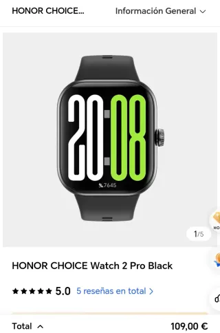 Reloj inteligente Honor Choice Watch. Caja sin desprecintar. Precio no negociable - Diseño moderno y elegante. - Pantalla táctil color 1,3" - Supervisión ritmo cardiaco - Batería larga duración - Resistencia al agua IP68 - Correa ajustable. - Color negro