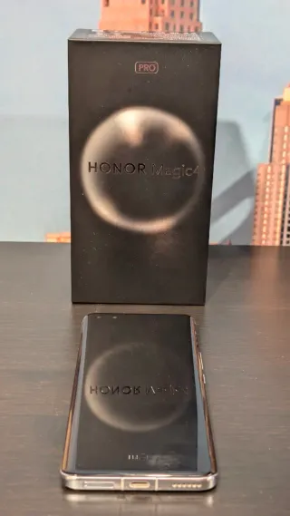 Teléfono móvil HONOR Magic4 Pro con doble SIM y 256GB de almacenamiento. Color cyan - Color negro. - Capacidad de 256GB. - Dual SIM. Perfecto estado y funcionamiento. Buena cámara y edición con IA espectacular