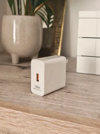 Cargador rápido Honor de 100W. - Diseño compacto y blanco. - Puerto USB-C. - Versión CH