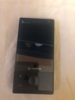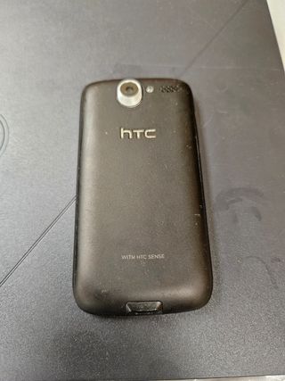 Teléfono móvil HTC en color negro, incluye cargador y batería. Comprobado: pantalla táctil, menús, funciones, iluminación y sonido.Funciona todo ok.
