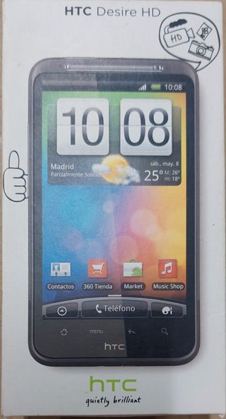 Teléfono HTC Desire HD en buen estado en su caja original. - Incluye auriculares a estrenar y funda de silicona. - Pantalla cinematográfica de 4,3 pulgadas. - Cámara de 8 megapíxeles con grabación de vídeo HD 720p. - Procesador de 1 GHz. - Android con 1.5 GB de RAM.