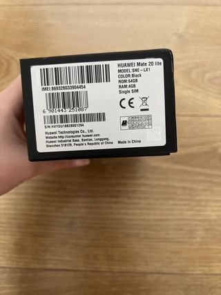 Teléfono Huawei Mate 20 Lite con su caja original. - Caja negra con logo de Huawei. - Modelo: Mate 20 Lite.