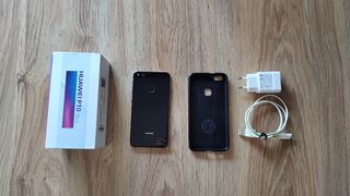 Teléfono móvil Huawei P10 Lite en buen estado, listo para usar. Incluye accesorios. - Funda protectora negra. - Cargador y cable USB. - Caja original. - Funda resina pantalla