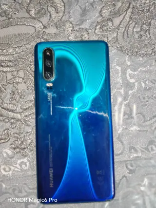 Teléfono móvil Huawei P30 en color azul. - Pantalla de 6.1 pulgadas. - Cámara triple. - Batería de larga duración. PARA PIEZAS O REPARAR. No se admiten devoluciones.