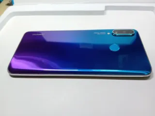 Teléfono móvil Huawei P30 Lite con un degradado de color azul a morado. Todo funciona correctamente. se entrega solamente el móvil - Cámara triple. - Sensor de huellas dactilares en la parte trasera.