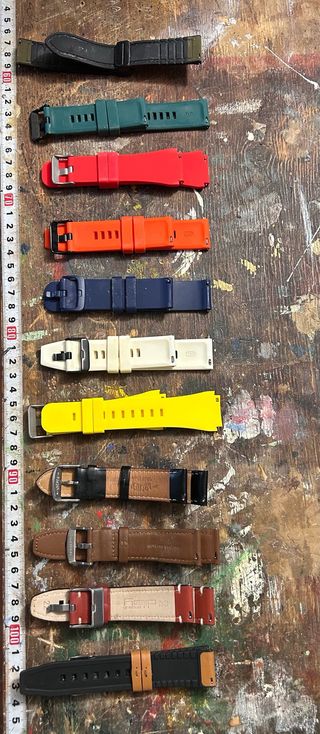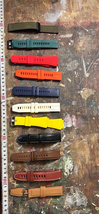 Lote de correas de repuesto para relojes Huawei GT, compatibles con cualquier marca de esta medida. La mayor parte no se ha usado nunca. El precio es por el lote completo, individualmente serian 6€ las de silicona 7€ las de cuero. El sistema de enganche es muy comodo, de pestillo. Variedad de colores y materiales para personalizar tu dispositivo. - Correa de silicona verde. - Correa de silicona roja. - Correa de silicona naranja. - Correa de silicona azul marino. - Correa de silicona blanca. - Correa de silicona amarilla. - Correa de cuero marrón. - Correa de cuero y tela con detalles rojos. - Correa de silicona negra con detalles