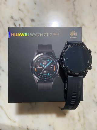 Reloj inteligente HUAWEI Watch GT 2 de 46mm en color negro. - Diseño deportivo y elegante. - Correa de silicona negra. - Pantalla redonda.