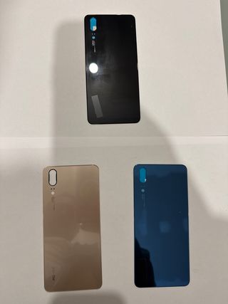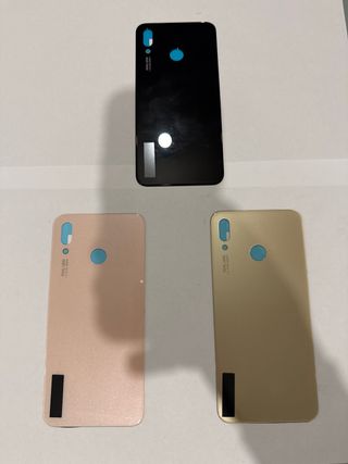 Tapa trasera de repuesto para Huawei P20 Lite. - Color negro. - Diseño con espacio para cámara dual y flash.