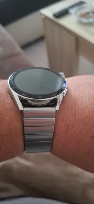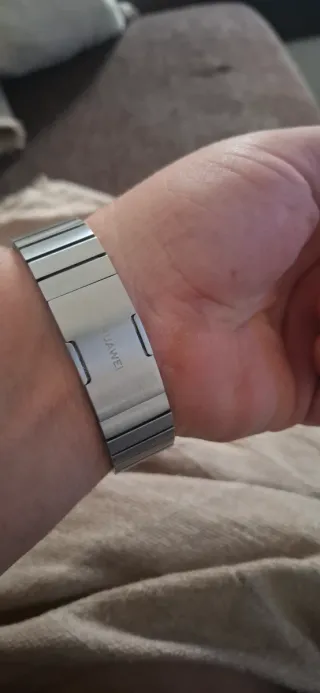 Reloj inteligente Huawei Watch Pro con un elegante diseño. Solo reloj y cargador. No negociable . - Bisel de acero inoxidable pulido. - Correa de eslabones metálicos.