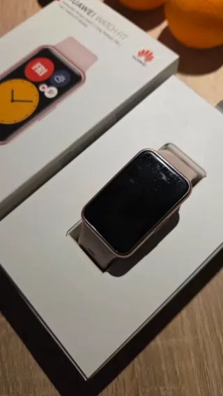 Reloj inteligente Huawei Watch Fit en color oro y rosa. Un accesorio moderno y funcional. Funcionando sin ningún problema, usado pero cuidado. Hace muchas más cosas de lo que imaginas y por el precio le puedes sacar mucho rendimiento. - Pantalla AMOLED de 1.64 - Diseño elegante y ligero.