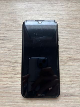 Teléfono móvil Huawei en color negro. NO FUNCIONA (sólo para piezas). No sé el modelo ni la capacidad de almacenamiento. - Pantalla con notch. - Cámara frontal. - Logo de Huawei en la parte trasera.