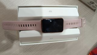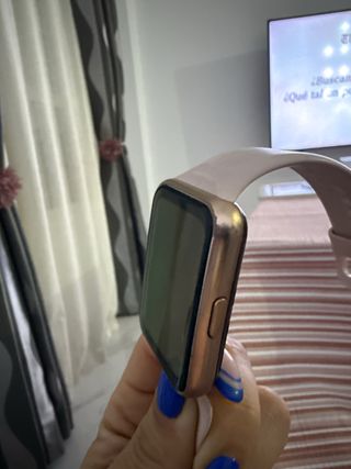 Reloj inteligente Huawei Watch Fit 2 en color dorado y rosa. Un accesorio moderno y funcional. -Atiende llamadas y whasaps -Contactos - Pantalla a color, pantalla Amoled -monitorización precisa del ritmo cardíaco, SpO2, sueño y estrés, y seguimiento del ciclo menstrual. -🔋20Dias de duración la bateria -Cargador y posible caja - Diseño elegante y ligero. -Tiene algunos signos de uso arriba en el marco y correa algo desgastada pero se puede cambiar
