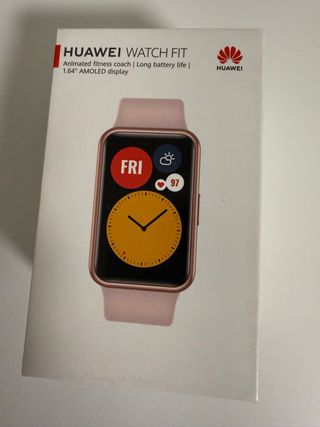 Smartwatch Huawei Watch Fit en color rosa y dorado. Un compañero ideal para tu día a día. - Pantalla AMOLED de 1.64 pulgadas. - Coach de fitness animado. - Batería de larga duración. En su caja con accesorios originales.Regalo correa naranja nueva a estrenar