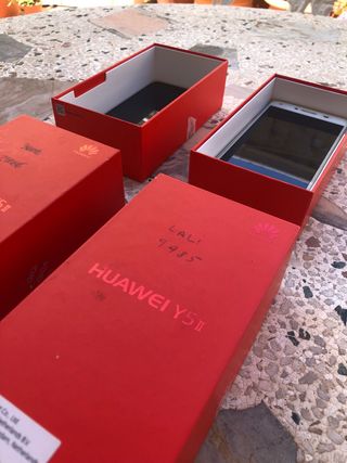Dos móviles Huawei Y5 II no funcionan. Ideales para piezas o reparación. - Se venden juntos. - Uno es blanco y otro negro. - Ambos están en sus cajas originales.