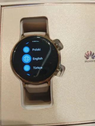 Elegante reloj Huawei Watch GT 2 en acabado dorado con correa color blanco. Diseño moderno y sofisticado. Pantalla táctil a color. Funciona perfectamente, pero yo ya no lo uso. Caja original, instrucciones y cargador original.