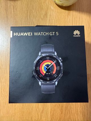 Reloj inteligente Huawei Watch GT 5 en color negro. Oportunidad!!! regalado a mi padre que no le sacó partido, puesto sin usar un mes. Sin arañazos ni marcas, se comprueba a la vista cuando quedemos, y probarlo también! Funciona TODO perfectamente con todo lo original de la compra. Muy bien cuidado. Reloj de última generación deseando ser aprovechado!!!