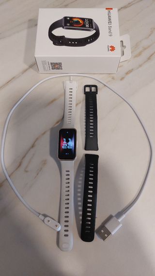 Pulsera de actividad Huawei Band 9 en color negro y blanco. Incluye dos correas. - Correa de color blanco. - Correa de color negro. - Cable de carga magnético.