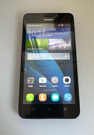 Teléfono móvil Huawei con un diseño elegante en blanco. - Pantalla de 5 pulgadas. - Cámara trasera de 13 MP. - Batería de 2200 mAh. - Cargador - SIM LIBRE ( se ha caído el plástico de la tecla de encender, presionando un poquito hace su función igual ..cuesta entre 2 y 5 € en la la tienda y solo es ponerla ya que presionando con algo funciona igual, por eso lo dejo en ese precio) FUNCIONA PERFECTAMENTE
