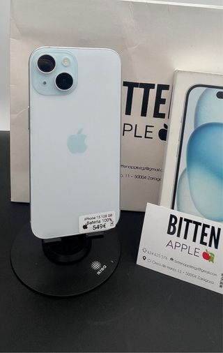 Se vende iPhone 15 128GB, BLUE Funciona perfectamente. *** Bateria NUEVA con Salud al 100%*** Bitten Apple Store Zaragoza ** Nos encontraras en nuestra tienda fisica en pleno centro de Zaragoza ; Calle Cinco de Marzo N°11 * Adjuntamos Factura a tu nombre & Garantia Premium Acepto cambio por otro teléfono ajustando diferencias & Puedes entregar tu telefono usado como parte del pago. ( SOLO ACEPTO CAMBIOS EN MANO / ZARAGOZA )
