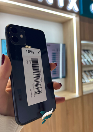 iPhone 11 de 64GB en color Negro. En buen estado, completamente revisado y funcionando correctamente. Batería al 72% de salud, ideal para quien busca iPhone a buen precio. 🔧 Especificaciones: • Pantalla Liquid Retina IPS de 6.1” • Procesador Apple A13 Bionic – rápido y muy fluido • Cámara trasera dual 12MP + 12MP / Frontal 12MP • Almacenamiento 64GB • Face ID para desbloqueo seguro • Conectividad 4G 🏪 Somos tienda: 📍 NexoPhone – Calle Pico Mampodre 5, Vallecas (Madrid) Profesionales en venta y reparación de móviles con garantía.